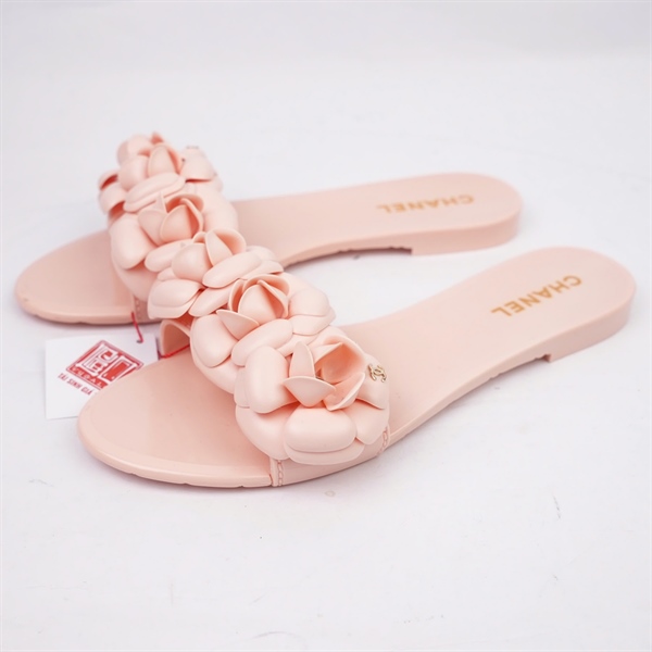 Dép Chanel hồng nude đính hoa sz38 (BQ) KG+