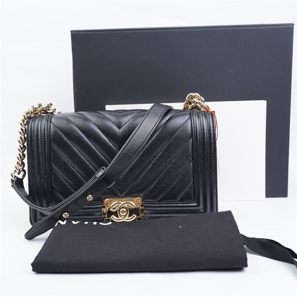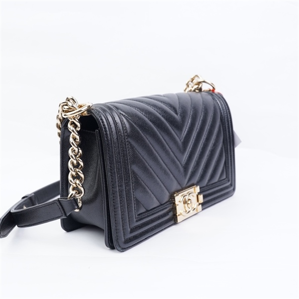 Túi Chanel Boy đen khóa vàng (22462724) sz20 (MV) KG+